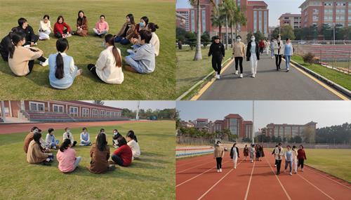 主題活動包含繞校健步行活動及操場趣味座談會,女職工們精神飽滿、積極參與,一陣陣歡聲笑語在美麗的校園操場上響起。大家促膝圍坐,說一說自己的美好理想,談一談自己的奮斗目標,在愉快輕松的環境下分享著自己在工作與生活中的心得體會、人生感悟。
