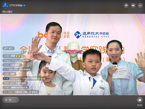 截至2022年,通用技術中紡標已成功舉辦7屆小使者活動,輻射全國5大區域,報名人員近5000人,線下實驗室參觀人員近2000人,線上網友參與人數近1800人,累計發放綠色小使者證書1000余份,參與合作媒體近10家,媒體報道近百篇(含轉載)。以最近一屆視頻號直播為例,觀看人數901人,觀看次數1749次,點贊次數41253次,評論次數650次,分享次數329次。