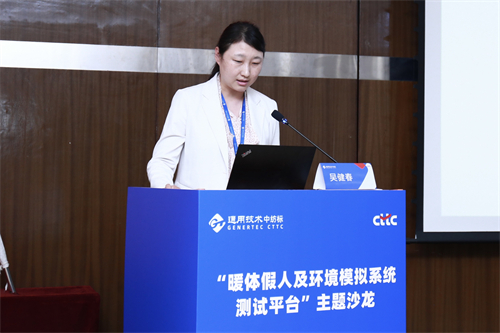 中紡標研發部高級工程師吳健春在題為《暖體假人及環境模擬系統測試平臺介紹》的報告中,圍繞暖體假人測試系統的原理、組成部分及出汗、溫度、行走和呼吸控制等方面展開細致講解,分享其精確模擬人體的熱濕傳遞過程。通過將暖體假人置于環境倉中,可進行模擬低溫、高溫、濕熱、降雨、降雪等單一或組合環境下的試驗。她同時重點介紹了該系統相關適用標準,確保測試流程的科學性、系統性和公正性。