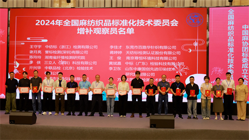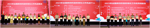 會議表彰了2023年度全國麻紡織品標(biāo)準(zhǔn)化技術(shù)委員會標(biāo)準(zhǔn)化工作的先進(jìn)單位和個人,同時為新增補的觀察員頒發(fā)了證書。