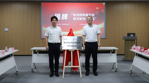 會議現場,浙江中紡標和上汽大眾質量保證部實驗室分別對企業發展情況及黨建工作進行了介紹,隨后簽訂了黨建共建合作協議,并進行“車內材料微生物技術研究課題組”揭牌儀式。