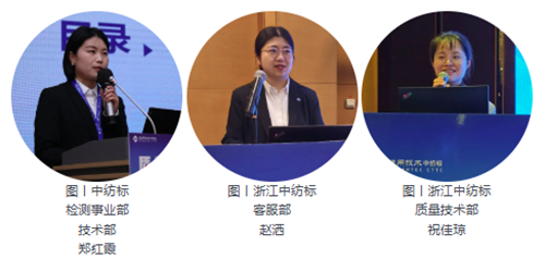 福建中紡標實驗室副主任壽鳳萍,江西中紡標檢測部副主任彭偉深圳中紡標曾欽學,中紡標檢測事業部技術部鄭紅霞浙江中紡標客服部趙灑、質量技術部祝佳瓊分別在不同區域以《紡織服裝新標準及應用解析》為題作了報告。