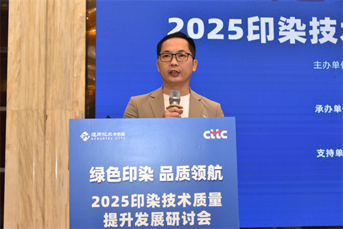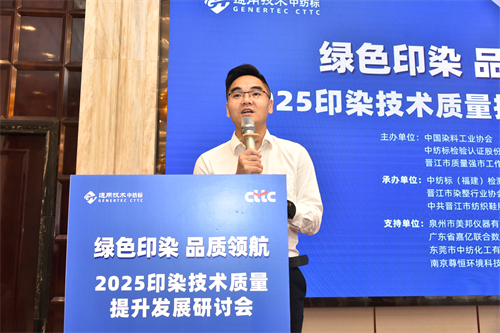 4月24日,由中國染料工業協會、通用技術中紡標檢驗認證股份有限公司(以下簡稱“中紡標”)、晉江市質量強市工作領導小組辦公室聯合主辦,中紡標(福建)檢測有限公司(以下簡稱“福建中紡標”)、晉江市染整行業協會、中共晉江市紡織鞋服產業鏈委員會聯合承辦,泉州市美邦儀器有限公司、廣東省嘉億聯合數碼科技有限公司、東莞市中紡化工有限公司、南京尊恒環境科技有限公司支持的“綠色印染 品質領航︱ 2025印染技術質量提升發展研討會”在晉江成功舉辦。